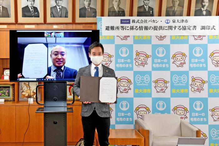 令和3年2月12日(金曜日)、インターネット上でレストラン等の混雑情報の配信サービスを提供する株式会社バカンと、避難所の混雑状況をインターネット上で配信する災害協定を締結しました。