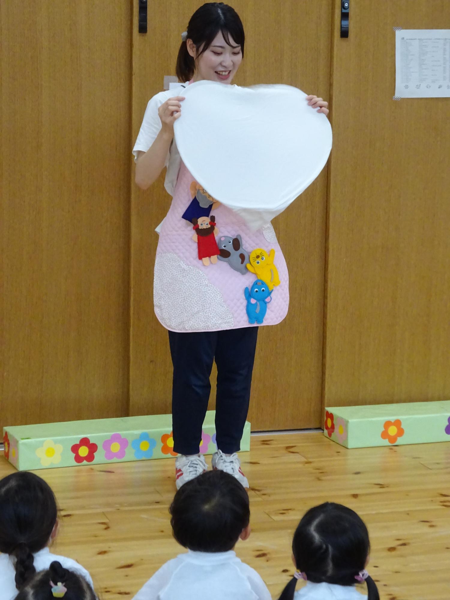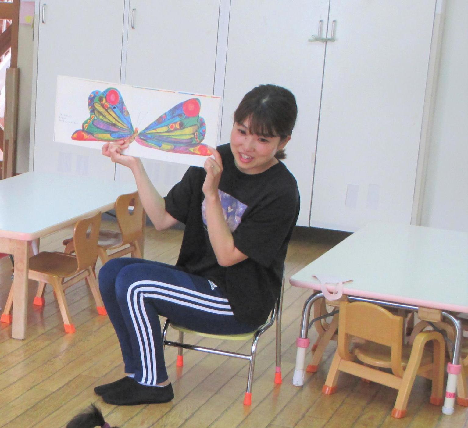私は泉大津市に生まれ育ち、市立の幼稚園に通っていました。当時担任だった先生が優しく、いつも寄り添ってくれたことで、毎日楽しく園生活を送っていました。また、そんな先生が大好きで憧れを抱くようになり、私も泉大津市の子どもたちに楽しく園生活を送ってほしいと思い、泉大津市の保育教諭を志望しました。
