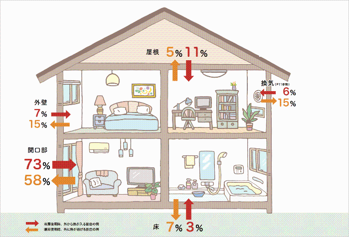 住宅における熱損失の多くは、窓やドアといった開口部からです。