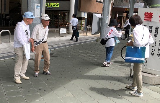 献血運動を推進するため、泉大津駅・市内スーパー等で街頭啓発(啓発物品の配布)を行っています。