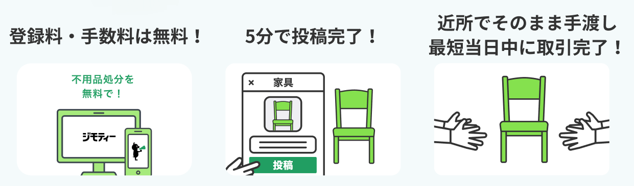 不用品を廃棄する前には、地域情報サイト「ジモティー」をぜひご活用ください。