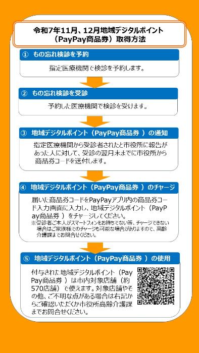 令和7年11月、12月にもの忘れ検診を受けた人に対して、地域デジタルポイント(PayPay商品券)を1,000ポイント付与します。