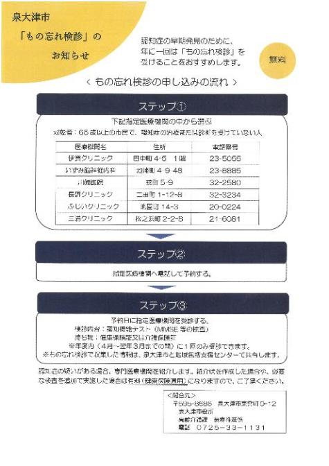 ※もの忘れ検診の受診情報は泉大津市と地域包括支援センターで共有します。