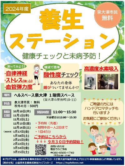 2024年度は、「泉大津市健康力向上プロジェクト事業補助金」を活用し、公益資本主義株式会社トップフェローズが本事業実施いたしました。