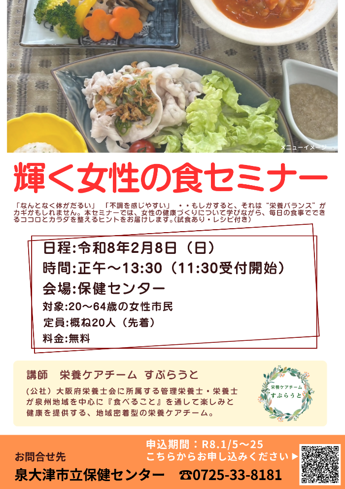 「なんとなく体がだるい」、「不調を感じやすい」 ・・更年期や生理前の不調・・もしかすると、それは“栄養バランス”がカギかもしれません。本セミナーでは、女性特有の健康課題について学びながら、毎日の食事でできるココロとカラダを整えるヒントをお届けします。