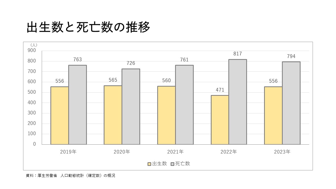 死亡数が出生数を上回っており、2022年(令和4年)は前年に比べて、出生数は約16%減少、死亡数は約7%増加しています。