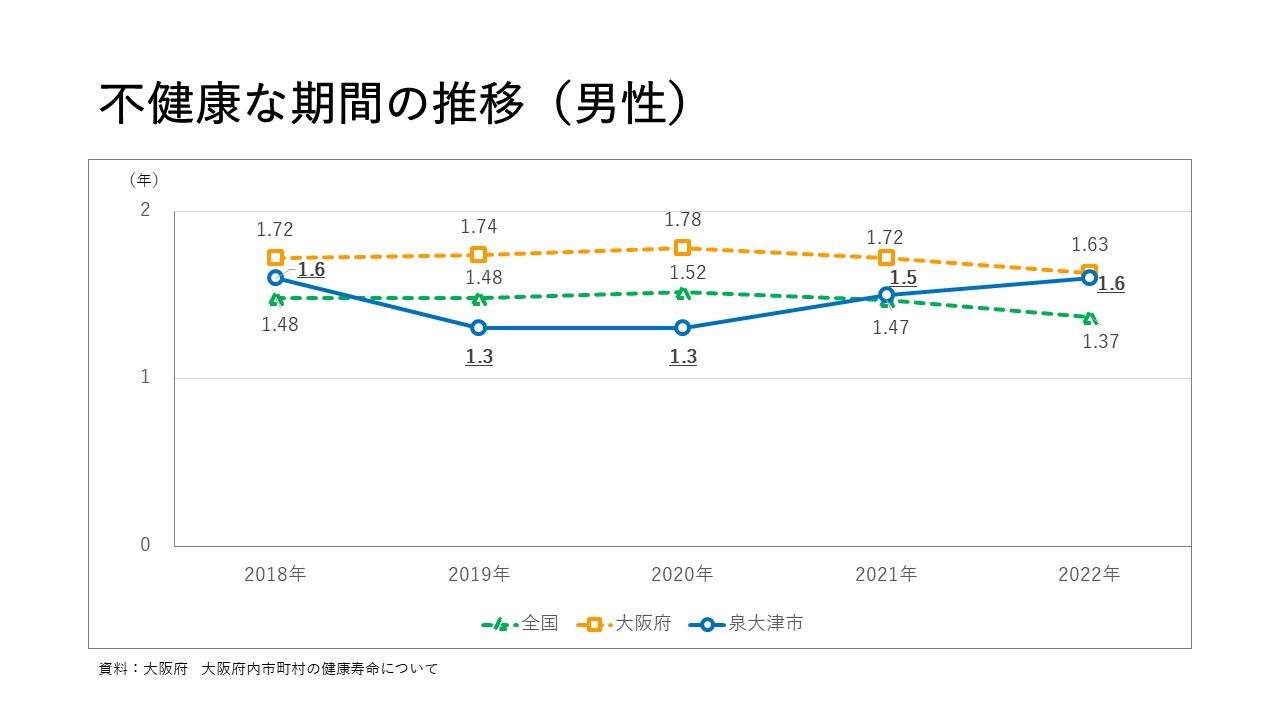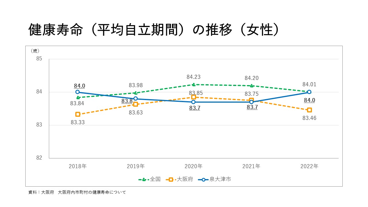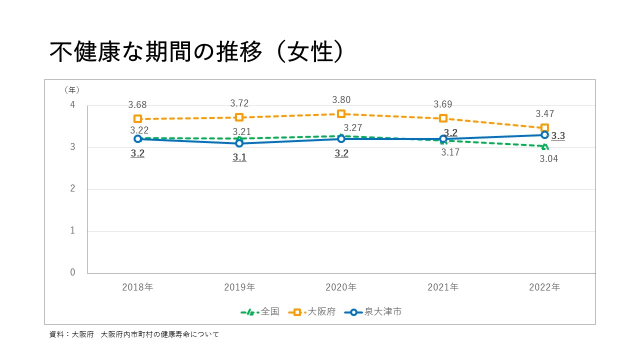 3 健康寿命 更新日:2025年01月22日 健康寿命 2022年の平均自立期間(要介護2以上を不健康な期間として算出)をみると、男女とも増加し、国平均に近づいています。一方、不健康な期間も、男女とも増加しています。 この記事に関するお問い合わせ先 健康づくり課 みなさまのご意見をお聞かせください このページの内容は分かりやすかったですか 分かりやすかったふつう分かりにくかった このページは見つけやすかったですか 見つけやすかったふつう見つけにくかった このページに関してのご意見がありましたらご記入ください。 当フォームは、返信不可能のため、ご質問にはお答えすることができません。