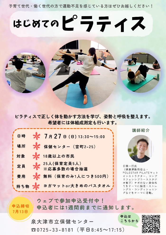 令和7年7月27日(日曜日)開催!はじめてのピラティス(7/13まで受付)