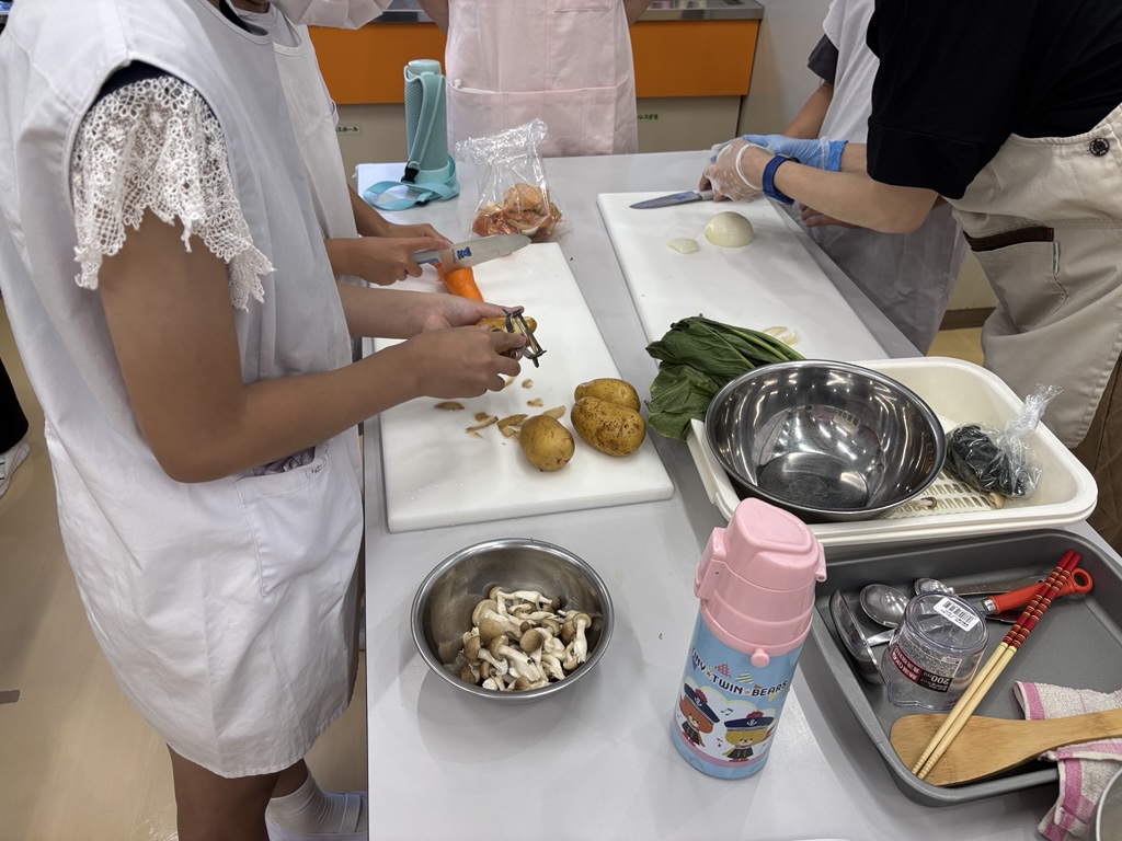 調理器具の使い方や野菜の切り方を学び、1人での調理に挑戦!基本の調理技術を身につけるとともに、災害時の備えについても確認しました。