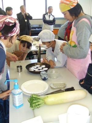 農地での手入れを終えた後、保健センターで、大根の辛み調べの実験をしました。その他、べっこう飴やポテトチップス作りも楽しみました。