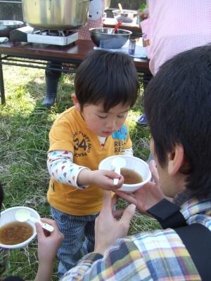 収穫の後は、保健センターの栄養士が作ったオニオンスープで体をあっためてもらいました!美味しい!おかわり!という声がたくさん☆作った甲斐がありました♪ なんとこのオニオンスープ、玉ねぎを飴色になるまで2時間も炒めました!