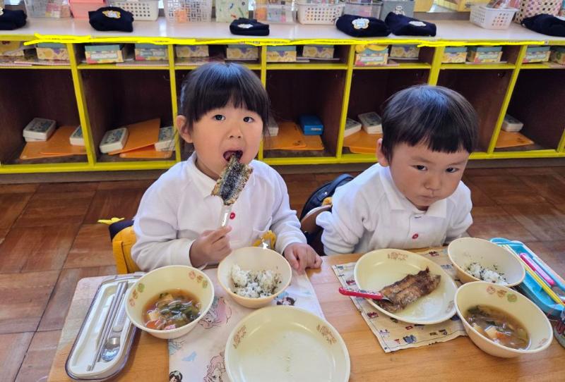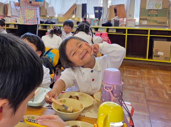 旭幼稚園で、旭小学校の給食を体験する『きらめき給食』が行われました。
