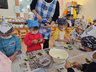 1回目の時よりもピーマンの種とりや玉ねぎの皮むきが上手になっていたこどもたち。
