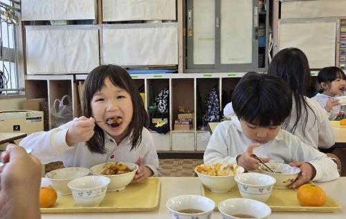 この日は、泉大津市のマスコットキャラクター「おづみん」の名前が入った食材を使った「おづみんカレー」が提供されました。