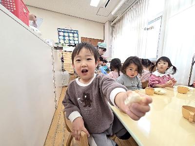 公立園所のおやつとして今年度から提供が始まった「おづみんパン」が、この度リニューアル!