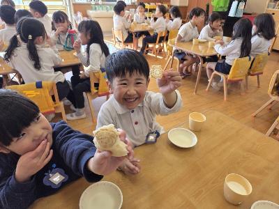 焼印がついたおづみんパンに大喜びのこども達🙌