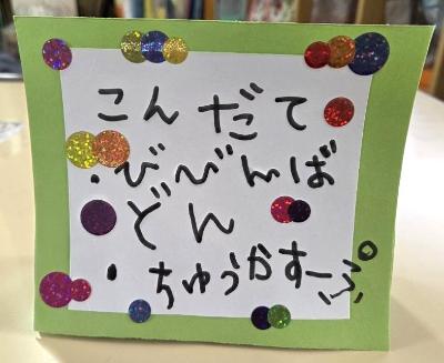 園児が参加者一人ひとりに献立表を手作りしてくれました✨