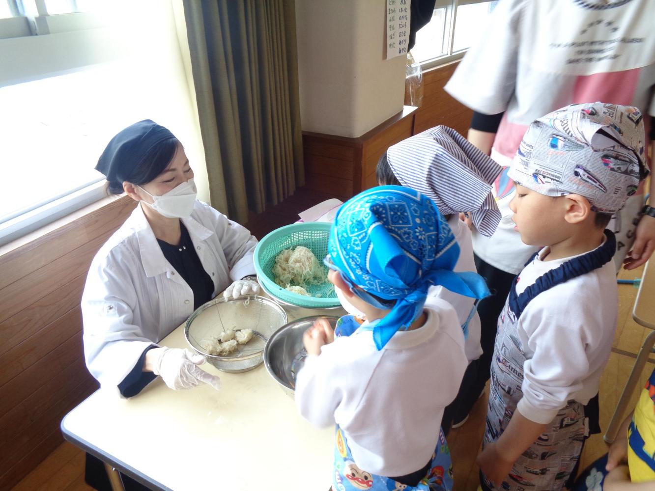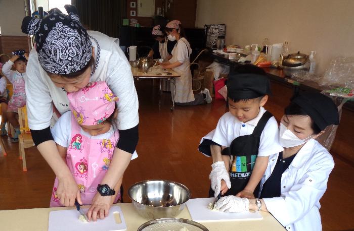 今年度第1回目、えびす認定こども園としては初めてのクッキングを実施しました。