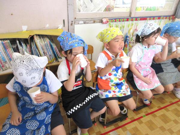前回のにじいろクッキングで、こどもたちから「出汁を飲んでみたい!」という声があったため、今回は出汁の試飲も行いました。