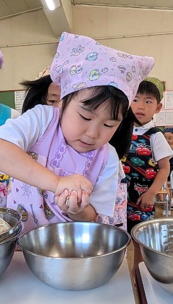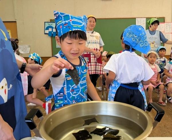5歳児のくじら組さんは、包丁で切干大根を切ることに挑戦!
