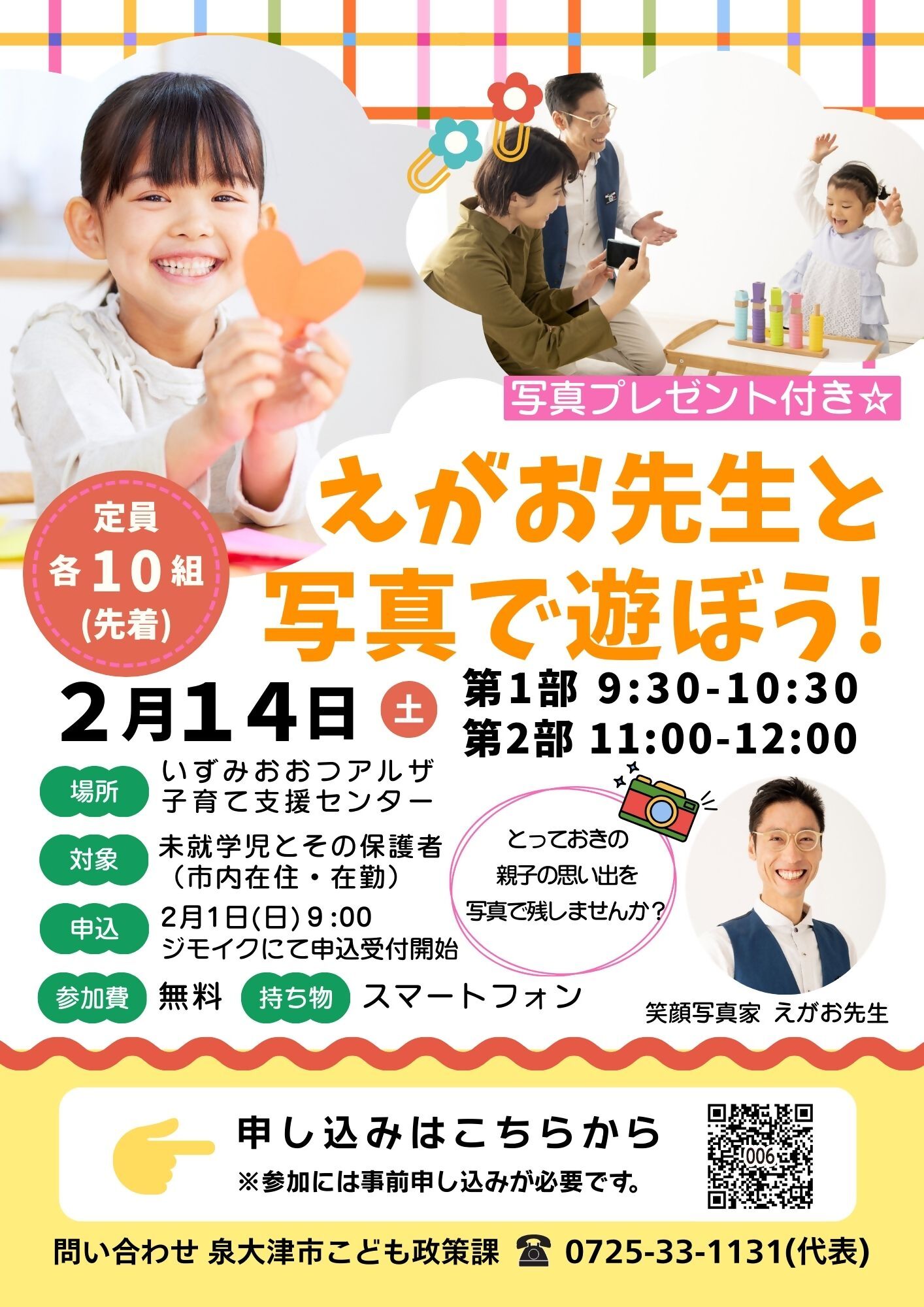 【2/14開催 親子イベント】写真プレゼント付き☆えがお先生と写真で遊ぼう!