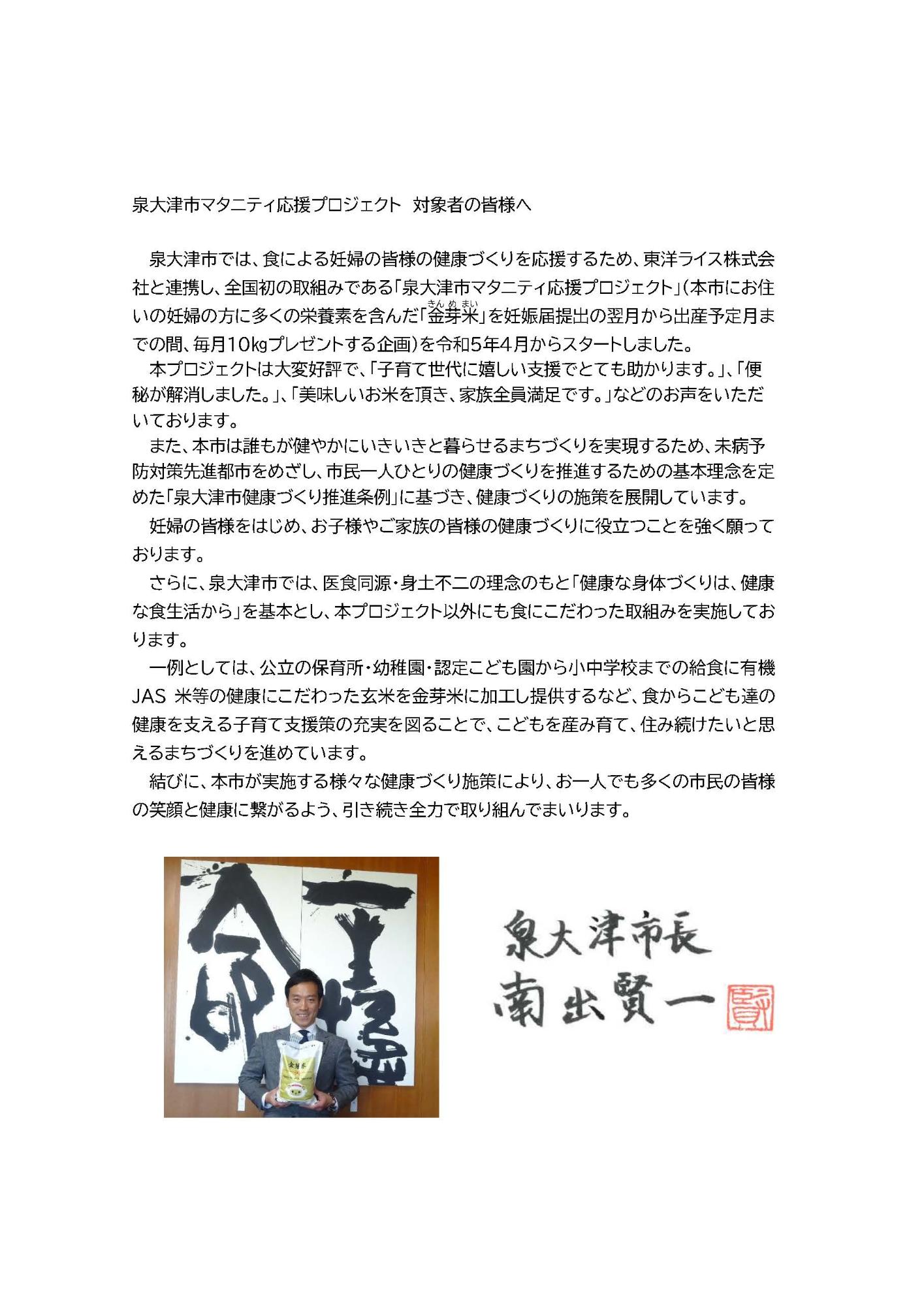 2.金芽米支給月1日時点で、泉大津市に住民登録がある妊婦