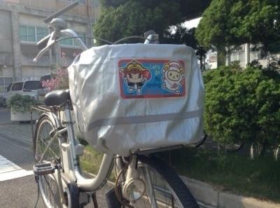 自転車前かご用のひったくり防止カバーを1,500枚作成し、市内・町内各所で無料取付キャンペーンを実施!