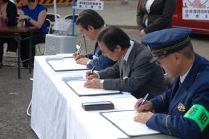 なお、調印式の後には、市内防犯活動キャンペーンを実施し、子どもの下校時に合わせて、市民ボランティアにより青色防犯パトロール車8台を出動させ、子ども見守り活動を実施した。