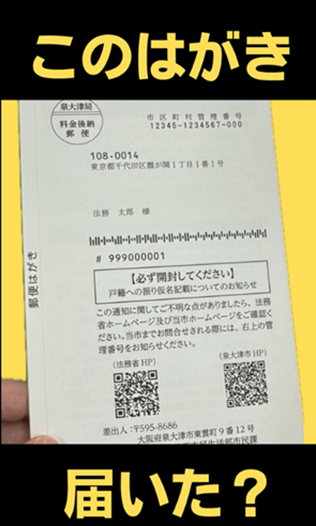 届いたハガキ、実際にどうすればいいの?そんな声にこたえるため、本物のハガキをそのまま使った解説動画を作成。「フリガナが合っている場合」「間違っている場合」に分けて、必要なアクションを30秒でスッキリ紹介しています。