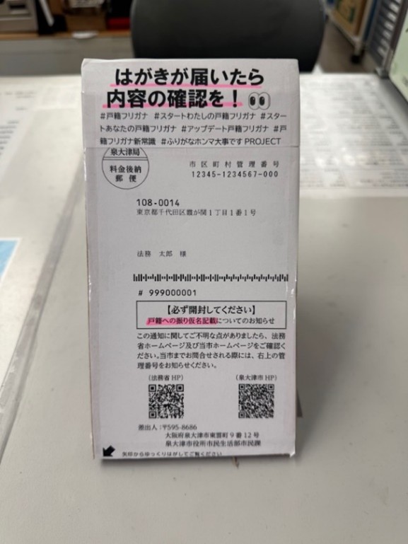 ~戸籍のフリガナ確認通知、7月25日から発送中~