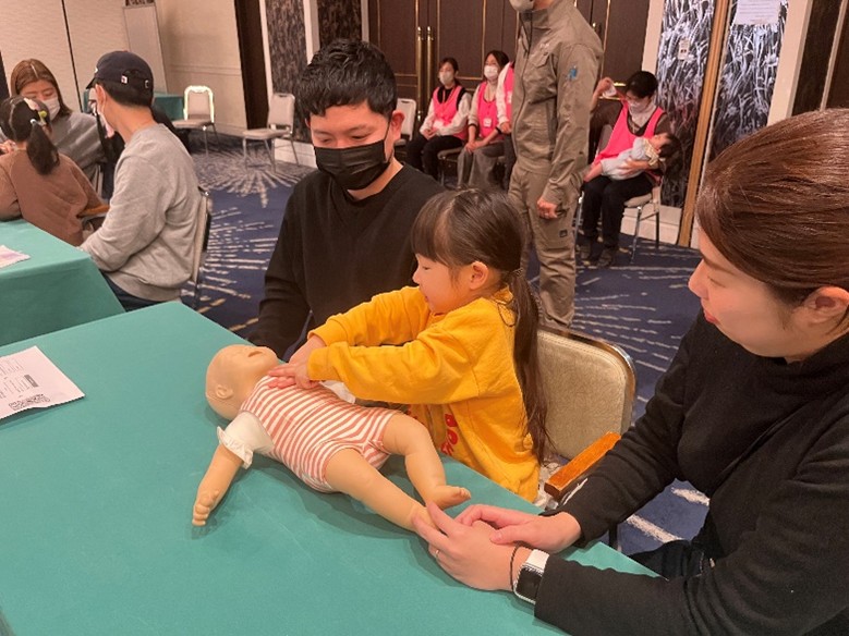 赤ちゃん心臓マッサージ体験の様子