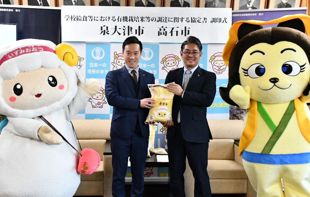 泉大津市(市長:南出 賢一)と高石市(市長:畑中 政昭)は、令和8年1月16日、学校給食等において安全・安心な有機栽培米・特別栽培米を安定的に活用することを目的に、「学校給食等における有機栽培米等の調達に関する協定」を締結しました。