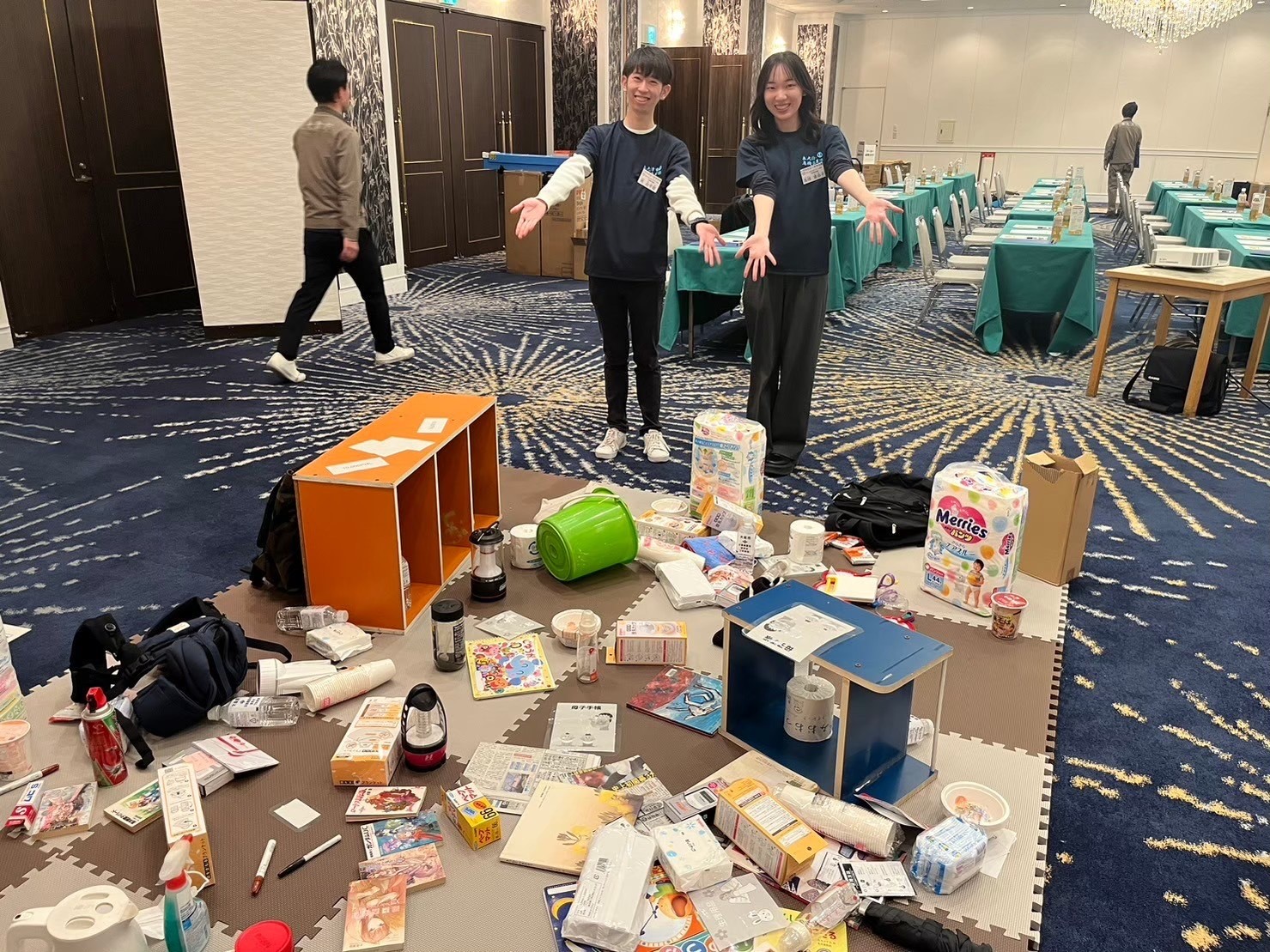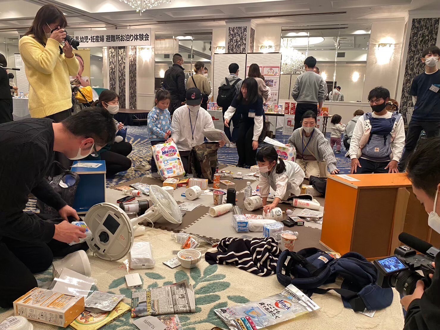 市が毎年主催している、「妊産婦・乳幼児避難所お泊り体験会」の企画・運営に携わりました。体験会の中で、私たちは2つの取組みを行いました。