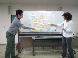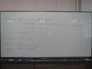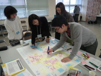 市民と大学生とが協力し、市民フォーラムでの発表方法について、話し合いを行いました。