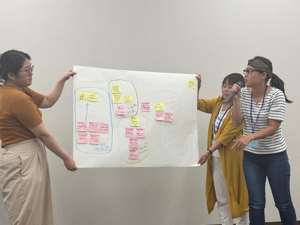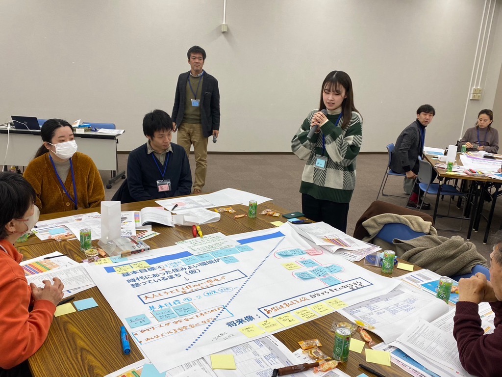 本ワークショップやその他の議論を踏まえてまとめられてきた第5次泉大津市総合計画案を、皆さんにご紹介してご意見をいただきました。また、総合計画を「みんな」に知ってもらうために出来ることは何か、どんな伝え方や見せ方が興味関心を持ってもらえるかについて意見交換しました。今後みんなで一体的にまちづくりを進めるため、愛称を設定すると良いのではないかとの意見がありました。