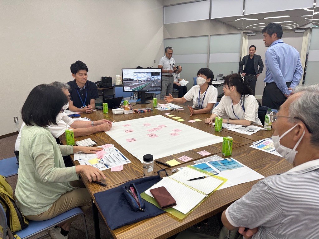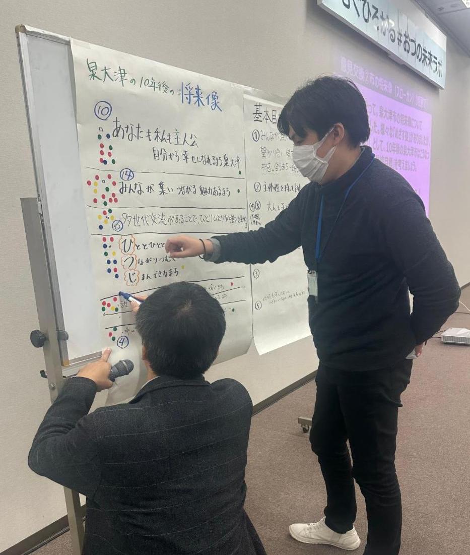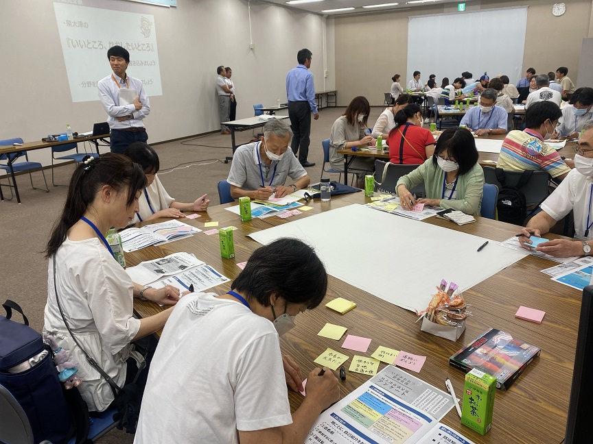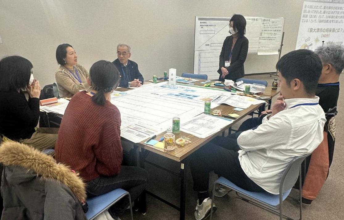 市が取り巻く環境を学んだのち、「泉大津のいいところ、なおしたいところ」について地域別で班に分かれて意見交換し、泉大津市の現状を確認しました。