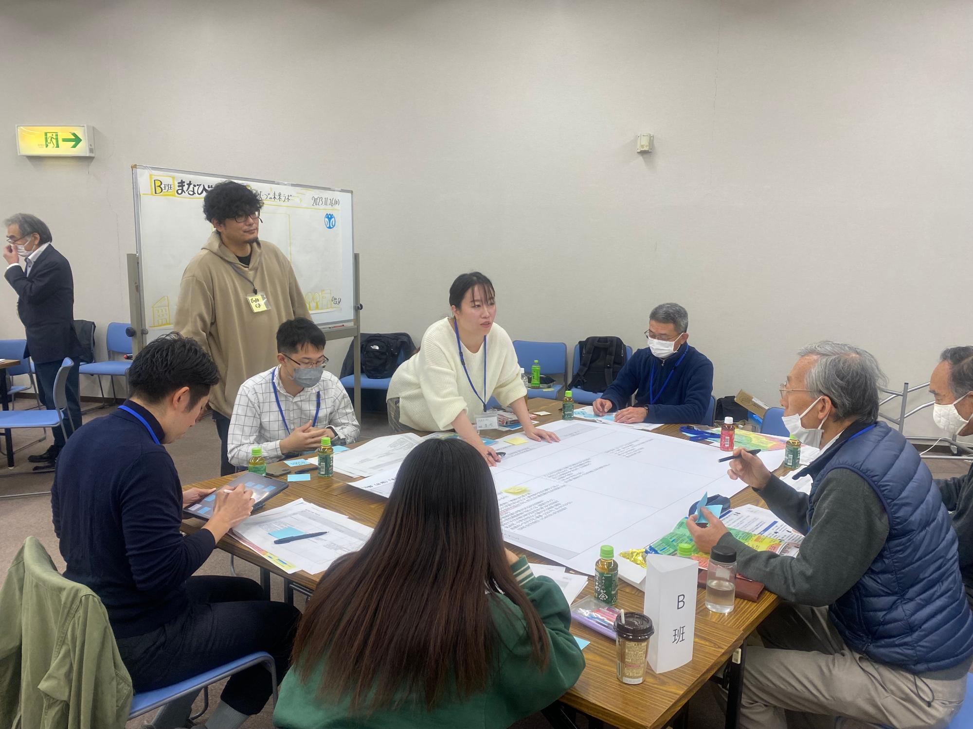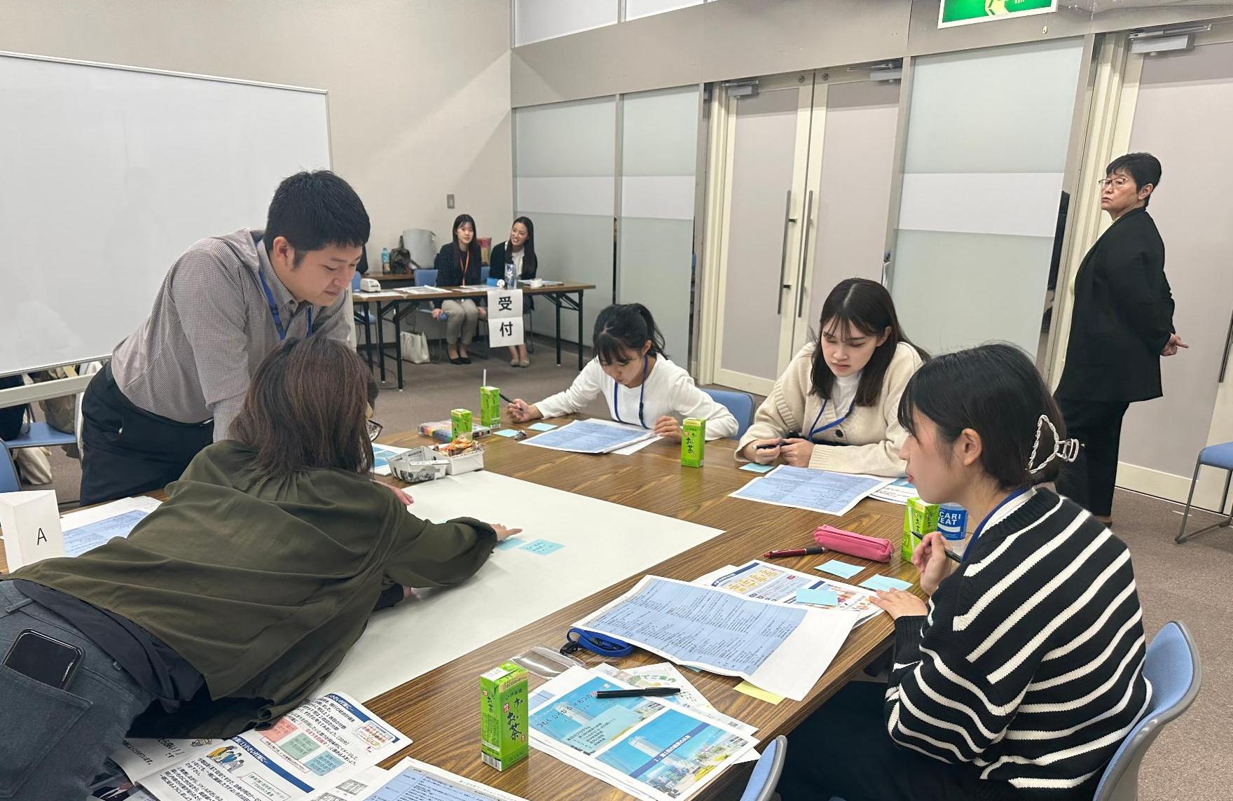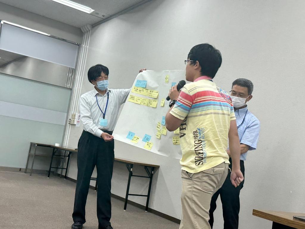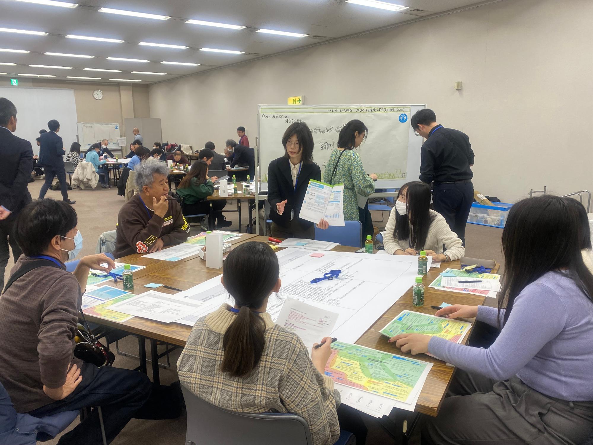 市が取り巻く環境を学んだのち、「泉大津のいいところ、なおしたいところ」について地域別で班に分かれて意見交換し、泉大津市の現状を確認しました。