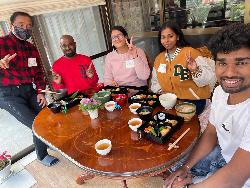 クリスマス、お正月の時期ということで、ごちそうを準備したり、着物で初詣したり、学生は母国の料理を持参したり、と素敵な交流になりました。