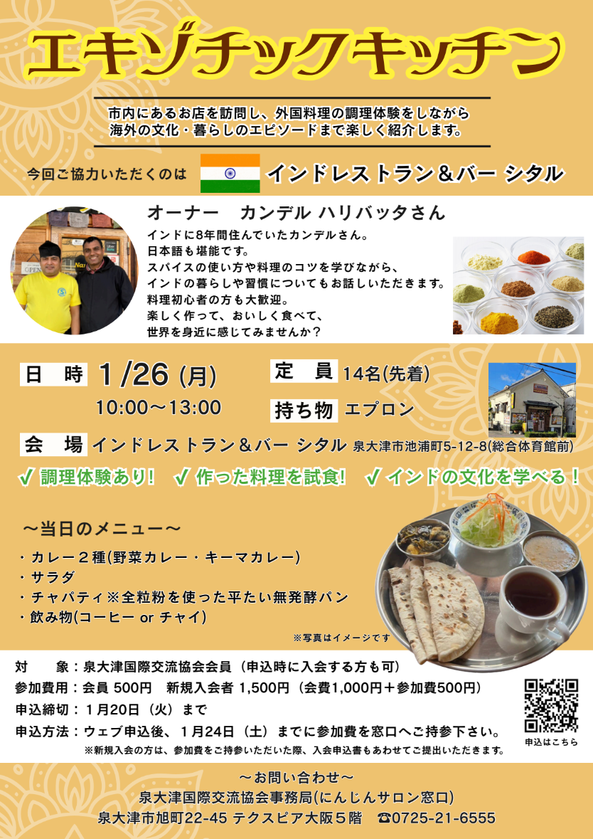 対象:泉大津国際交流協会会員(申込時に入会する方も可)