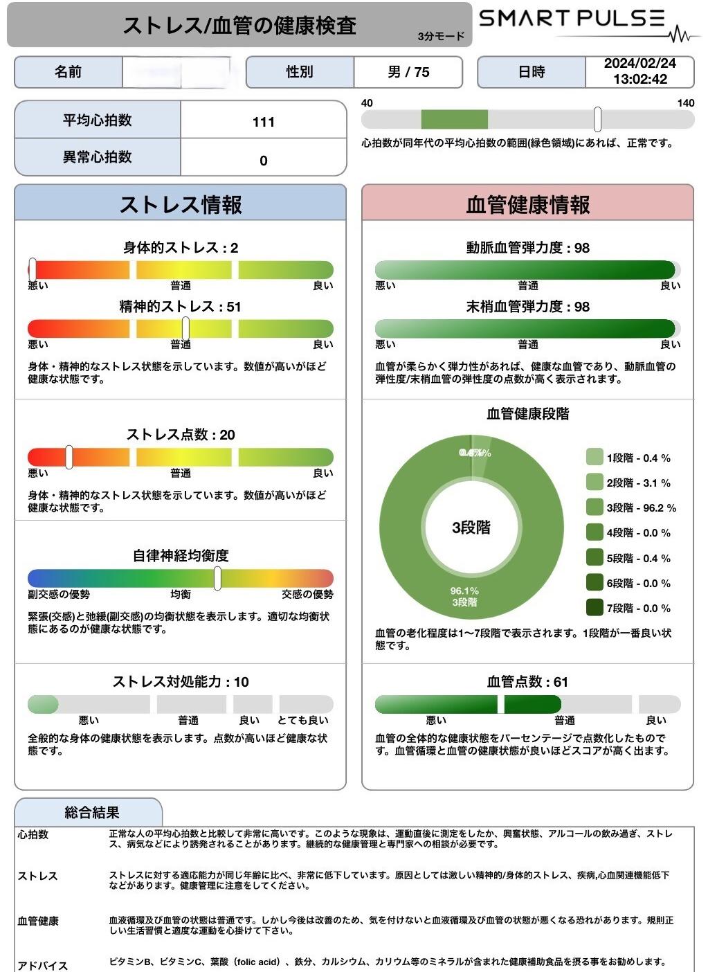 ・自律神経、ストレス(体/心)、血管弾力度の測定