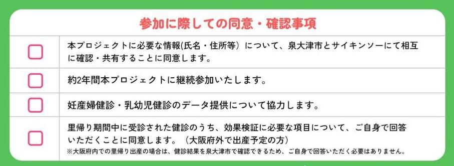泉大津市在住の妊娠12週目未満の妊婦の方は、ぜひこの機会にご参加ください。