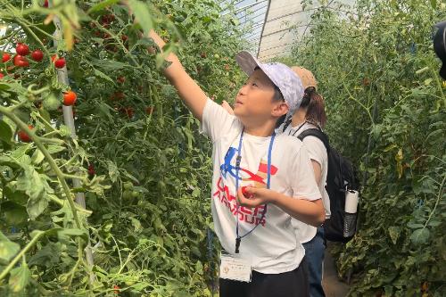 有機JAS認証を取得したトマトをはじめとする農作物を栽培する谷口農場では、トマトやトウモロコシの収穫を体験しました。体験を通じて、有機で作られる野菜の美味しさを体感したり、普段食べている農作物がどのようにして栽培されているのかを楽しく学びました!