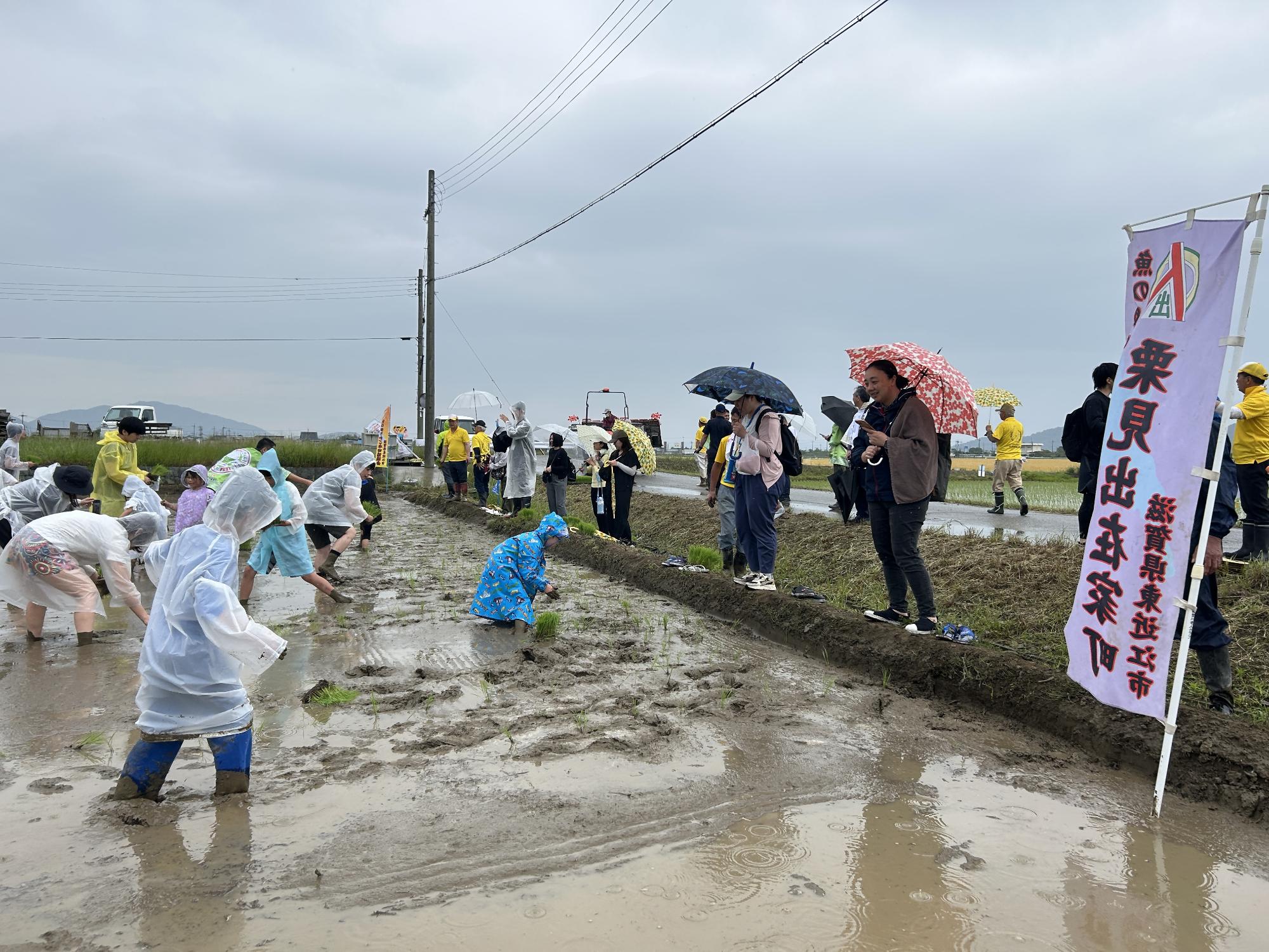 最初は、泥に足をとられながらも次第にコツをつかみ、楽しそうに苗を植えていました。また、トラクター乗車体験もあり、食や農業への関心を深める機会となりました。