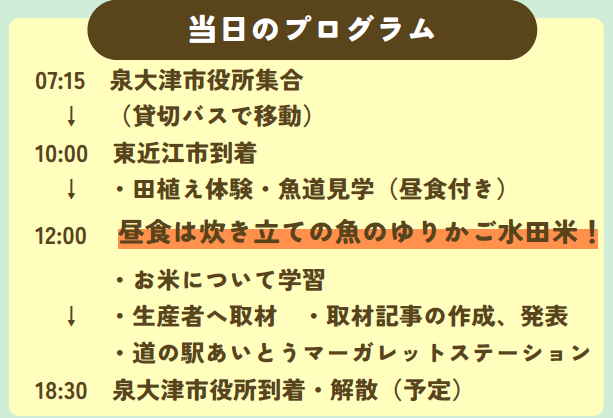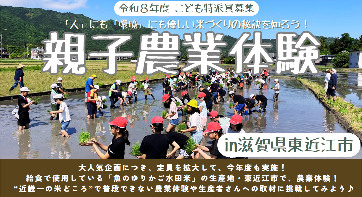 “近畿一の米どころ”で、普段できない田植え体験や生産者への取材と通して、「農業」や「食」の魅力を発信する「こども特派員」に親子で参加しませんか?
