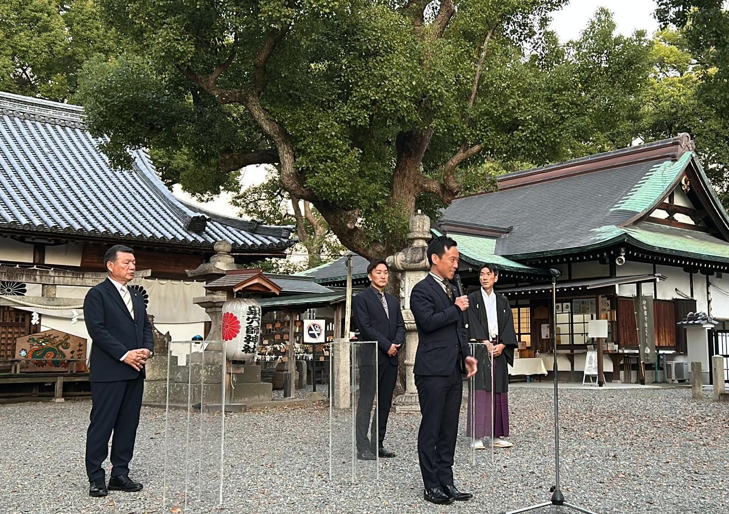 点灯式では、泉大津市・南出市長、株式会社タカショーデジテック・古澤社長、泉大津市議会・堀口議長、泉穴師神社・津守宮司に、本ライトアップに係る思いをお話いただきました。