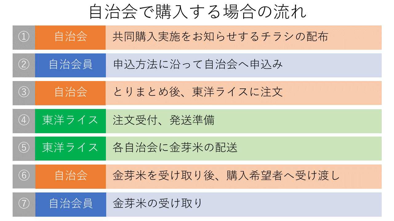 自治会のご協力のもと、共同購入を希望する自治会を対象に、自治会を窓口とした共同購入ができるようになりました。