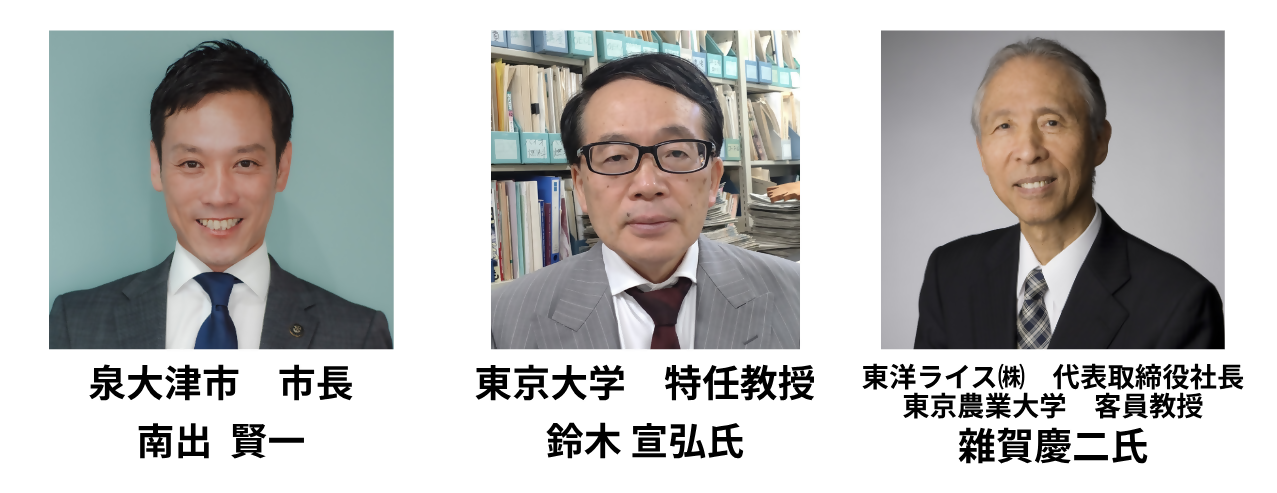 講演会では、泉大津市・南出賢一市長、東京大学・鈴木宣弘特任教授、東洋ライス株式会社・雜賀慶二代表取締役社長の3名が、日本の「食」の現状や未来、「米が持つチカラ」をテーマに登壇しました。
