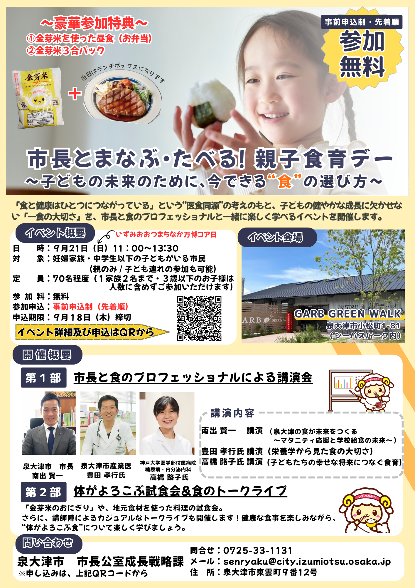 「食と健康はひとつにつながっている」という“医食同源”の考えのもと、子どもの健やかな成長に欠かせない「一食の大切さ」を、市長と食のプロフェッショナルと一緒に楽しく学べるイベントを開催します。