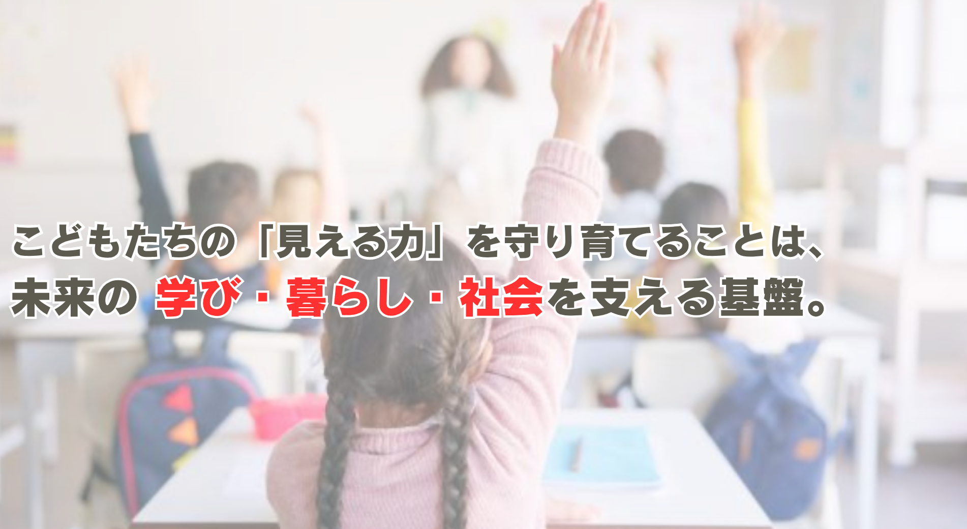 泉大津市こどもMYミライアイプロジェクトとは、「こどもの視力」と「目の健康」を守ることで、健康寿命の延伸とQOL向上を実現する自治体初のモデル事業です。
