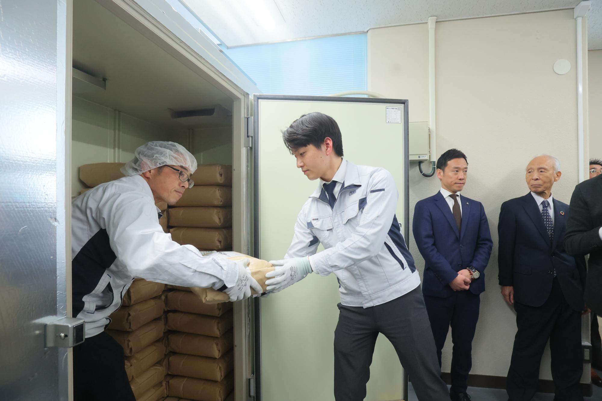 ▶米を熟成保管庫へ格納している様子